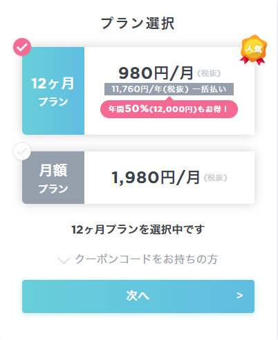 「今すぐ始める」をクリックすると、プラン選択画面に移行します。